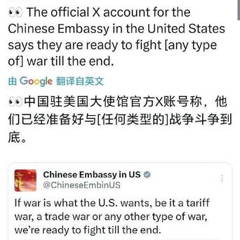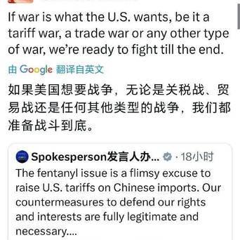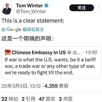 【中国驻美使馆要火?用英语发了外交部一句话,西方精英也要掂量掂量】在昨天的记者会上,中国外交部发言人林剑针对美国霸道行径,做出了一番十分霸气的回应:不管你想打什么类型的战争(当然包括热战)最好的股票配资炒股,中国都将奉陪到底!